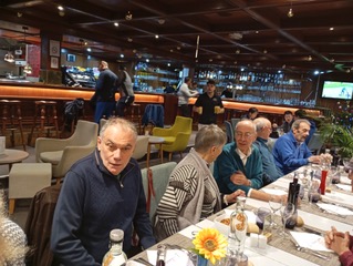 Ensuite, rendez-vous au restaurant "L’Ambassade" situé au golf de Rochefort en haut d’une colline, avec une superbe vue sur les parcours de golf et la forêt avoisinante. Nous nous sommes retrouvés une quinzaine de randonneurs anciens et actifs. Repas convivial et copieux. Foie gras, chapon et café gourmand avec 5 desserts. Ou choix avec Tartare de St Jacques et médaillon de lotte. un repas prolongé jusque tard dans l’après-midi, dans la bonne humeur.